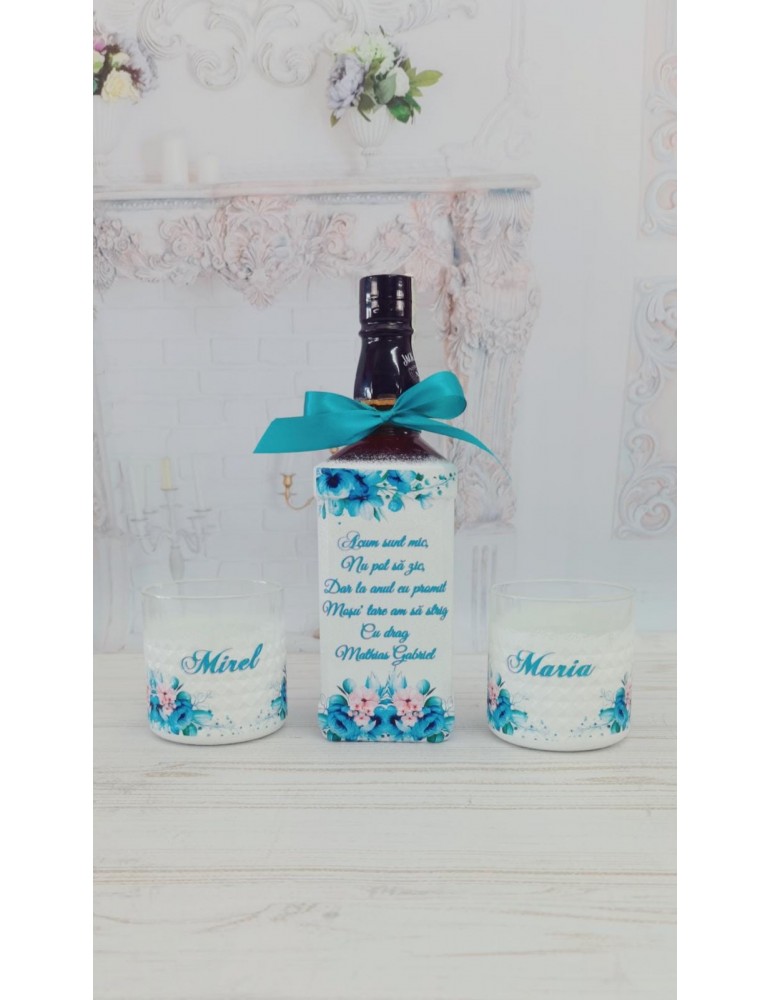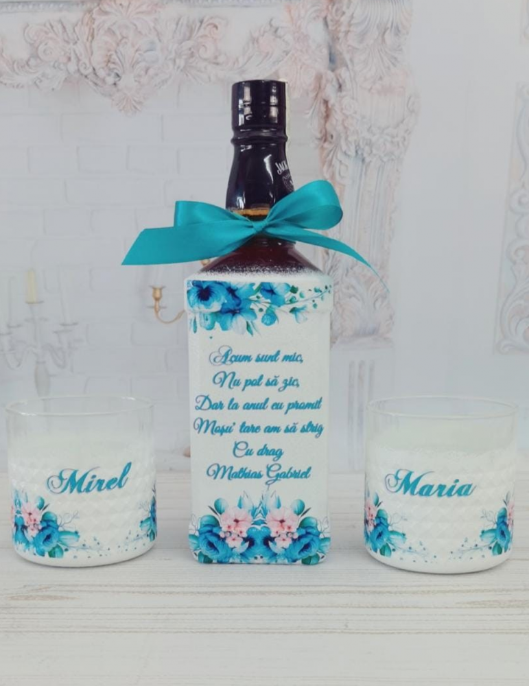 Sticla si pahare personalizate - cadou nasi pentru petrecerea de mot