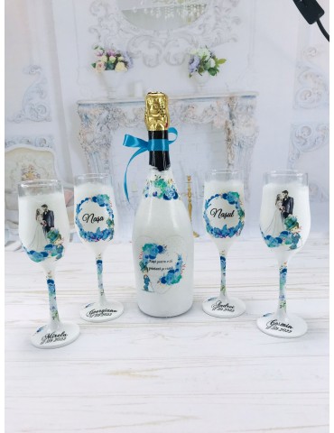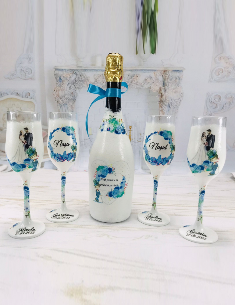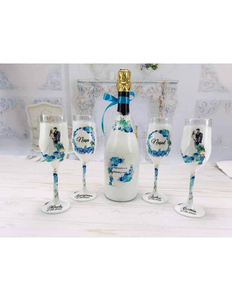 Sticla si pahare personalizate cadou pentru miri si nasi