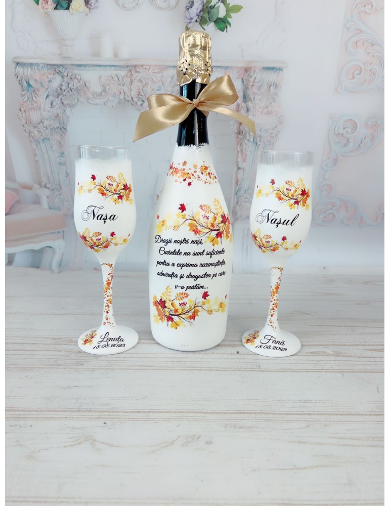Set sampanie personalizat pentru nasi cu tematica toamna