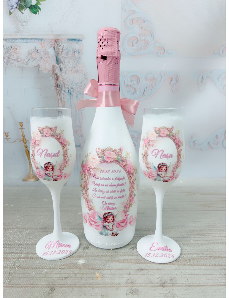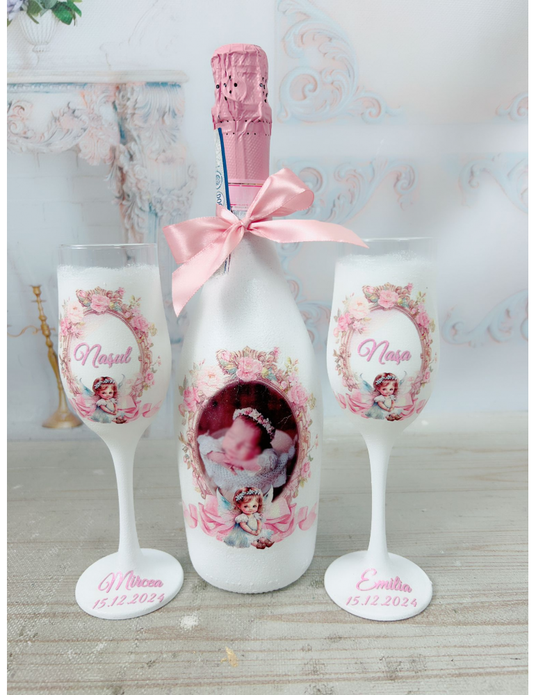 Set Sticla si pahare personalizate – Cadou nasi de botez premium