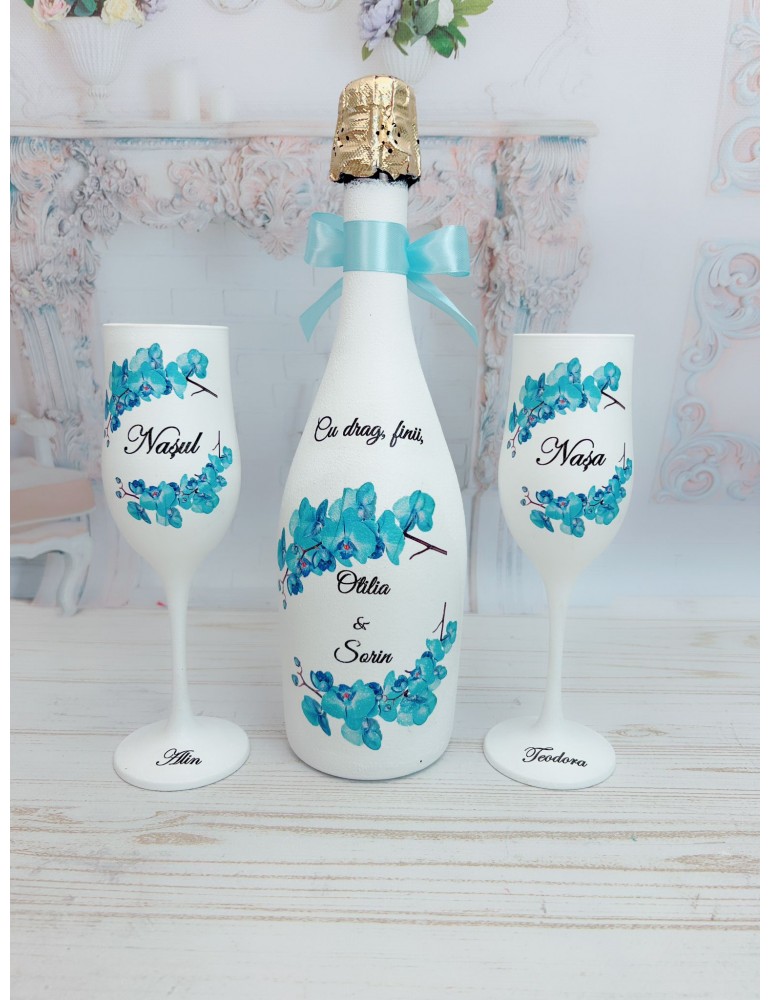 • Personalizare unica: Fiecare set este decorat manual si personalizat conform dorintelor tale, fiind un cadou personalizat pentru nasi ce exprima recunostinta ta fata de ei.
