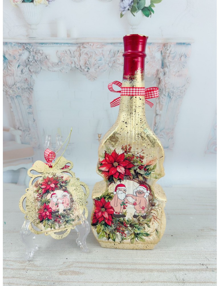 Sticla este vopsita si decorata manual in cadrul atelierului nostru folosind tehnica decoupage. Produsul vine insotit de ambalajul din poza.