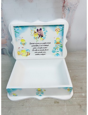Descoperă eleganța și rafinamentul unei cutii pentru bijuterii, perfectă pentru a păstra și organiza accesoriile tale prețioase. Fabricată din materiale de calitate, această cutie oferă protecție și un loc special pentru bijuteriile tale favorite, de la inele și brățări la coliere și cercei. Cu un design sofisticat este cadoul ideal pentru oricine dorește să păstreze bijuteriile într-un mod elegant și sigur. Alege această cutie pentru bijuterii pentru a adăuga un plus de stil și organizare colecției tale de accesorii!