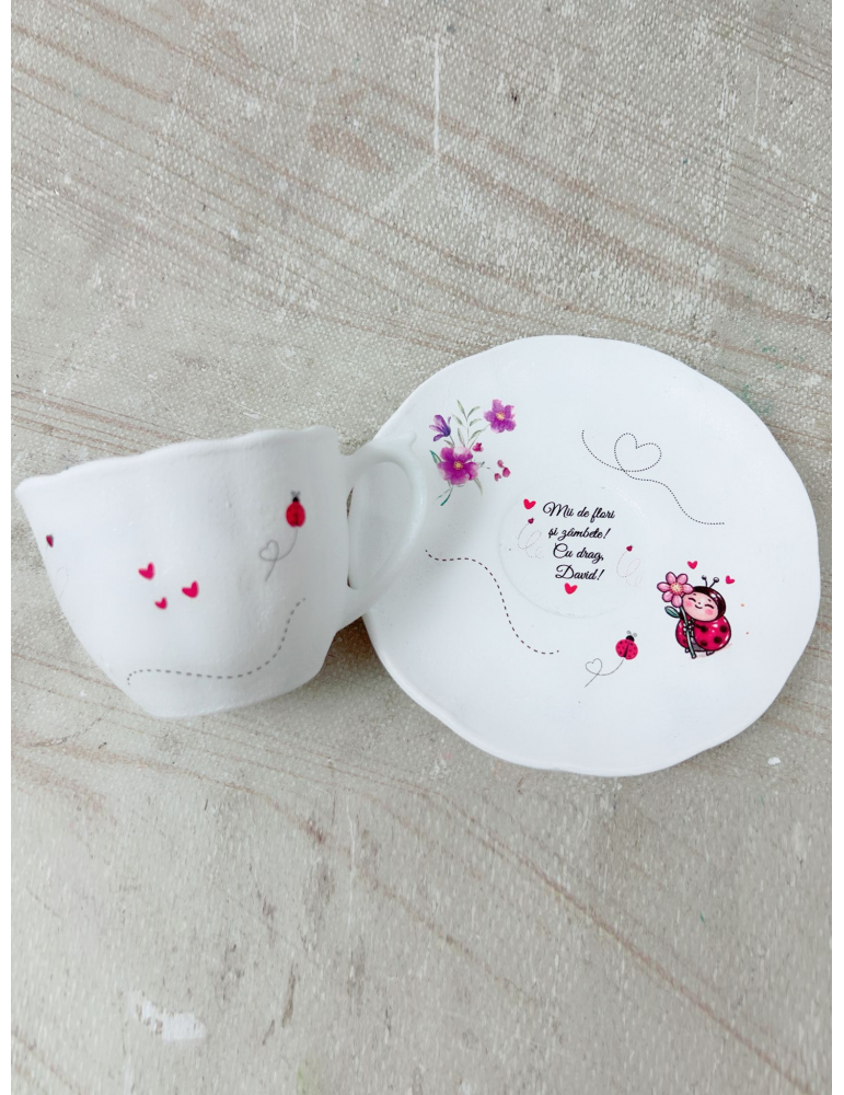 Surprinde o învățătoare sau educatoare cu un cadou deosebit, creat special pentru luna martie. Acest set cadou handmade cană + farfurie este realizat manual, cu grijă și atenție la detalii, fiind decorat cu ilustrații calde și mesaje de apreciere, perfecte pentru Mărțișor sau 8 Martie.