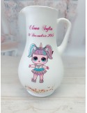 Această cantă de botez personalizată este un accesoriu decorativ elegant și unic, creat cu grijă în atelierul nostru. Fiecare piesă este vopsită și lăcuită manual, oferind un finisaj impecabil și durabil. Personalizarea carafei de botez pentru copil se realizează în funcție de preferințele tale: poți alege orice grafică dorită, numele și data evenimentului, iar pentru un plus de emoție, putem include și fotografia copilului.