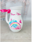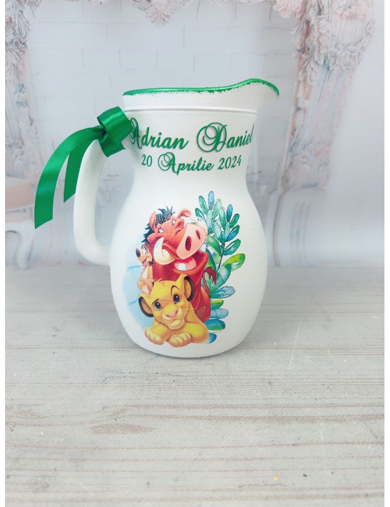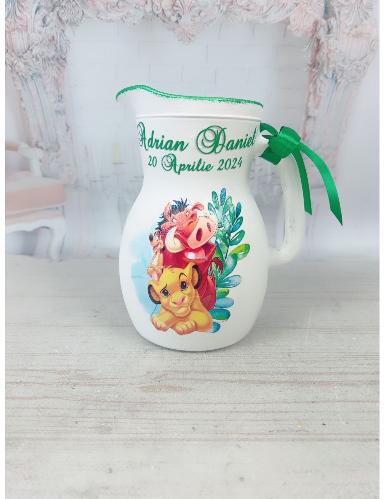 Această cantă de botez personalizată este un accesoriu decorativ elegant și unic, creat cu grijă în atelierul nostru. Fiecare piesă este vopsită și lăcuită manual, oferind un finisaj impecabil și durabil. Personalizarea carafei de botez pentru copil se realizează în funcție de preferințele tale: poți alege orice grafică dorită, numele și data evenimentului, iar pentru un plus de emoție, putem include și fotografia copilului.