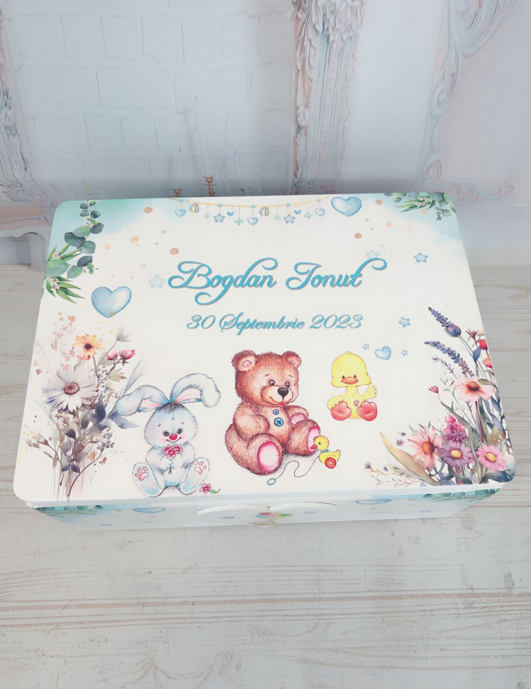 Această cutie de amintiri personalizată pentru copii nu este doar un obiect practic, ci și un cadou unic, perfect pentru a păstra cele mai importante momente din copilăria micuțului tău!