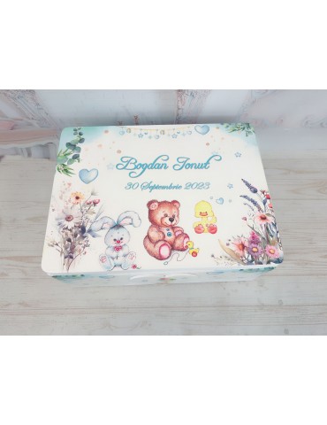 Cutie amintiri din lemn personalizata cu urs si iepuras