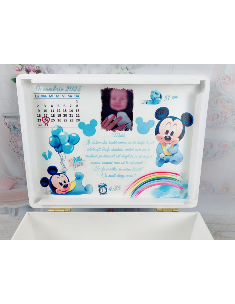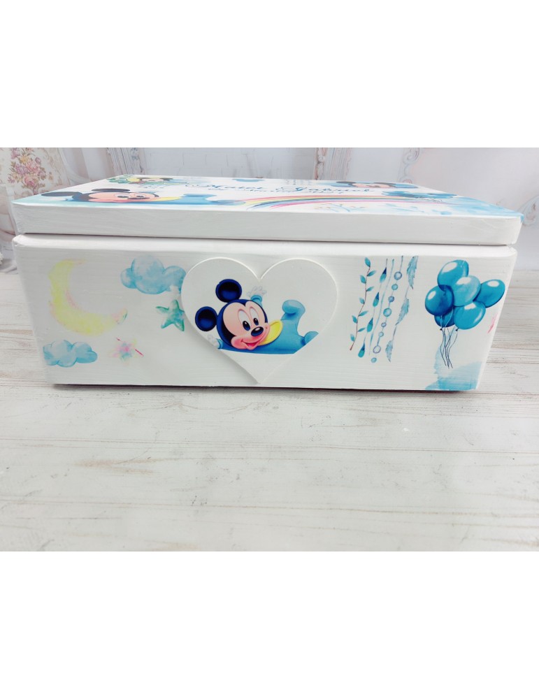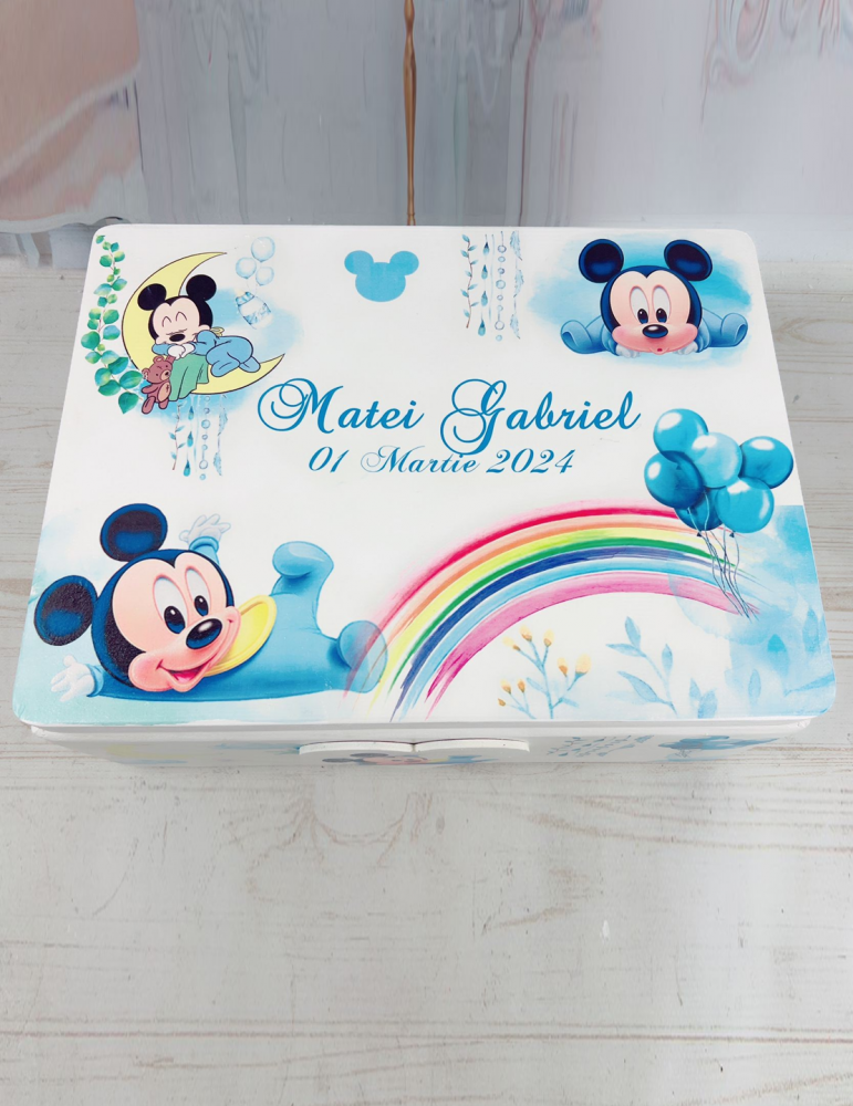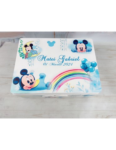 Cutie lemn pentru botez Mickey si curcubeu