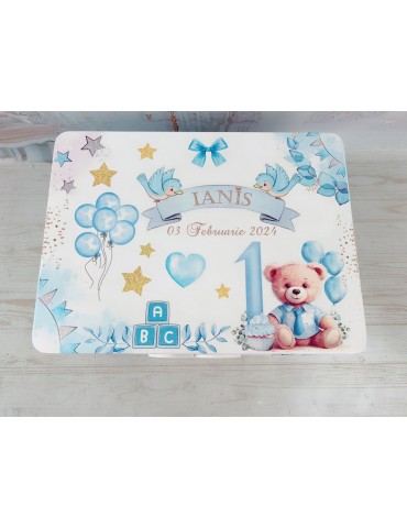 Cutie amintiri ursulet cu baloane pentru aniversarea de 1 an