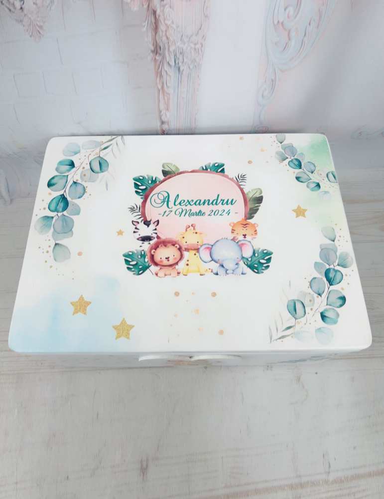 Această cutie versatilă este mai mult decât un simplu obiect de depozitare – devine o comoară personalizată, ideală pentru momentele importante din viața copilului tău!