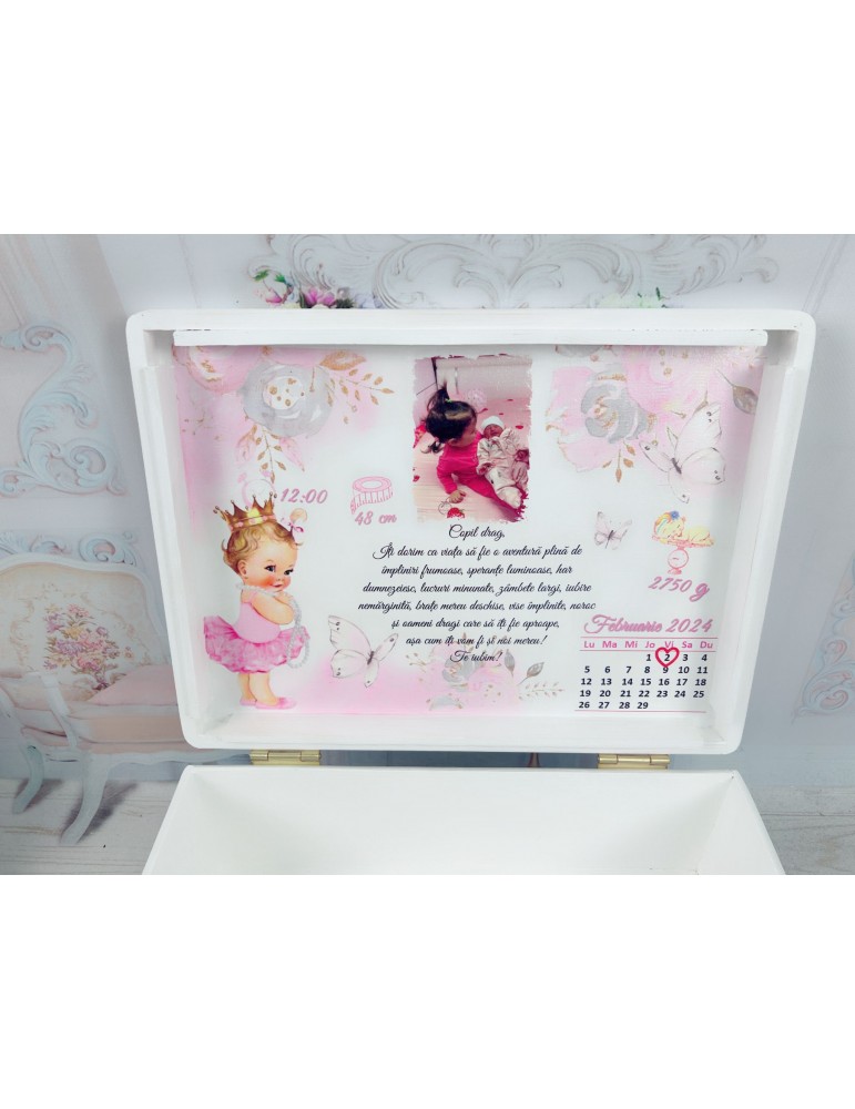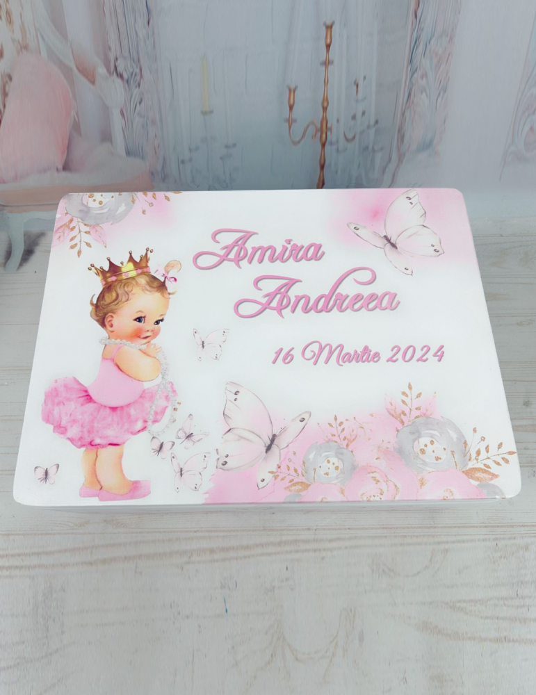 Cutie amintiri din lemn personalizata cu printesa