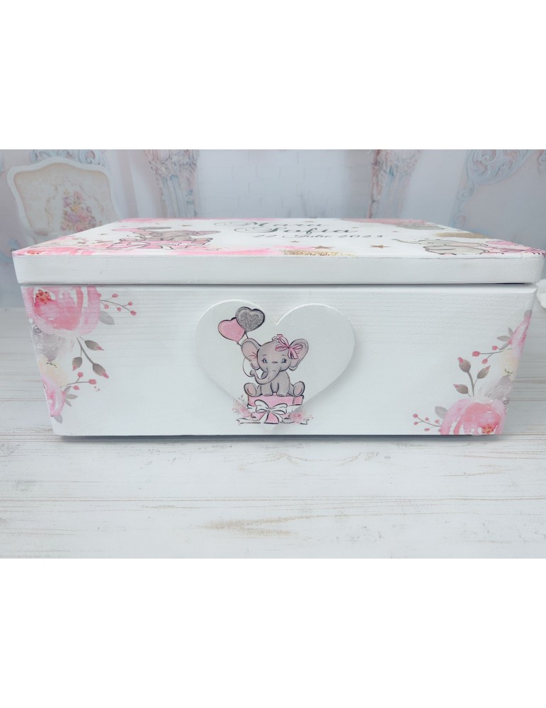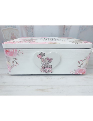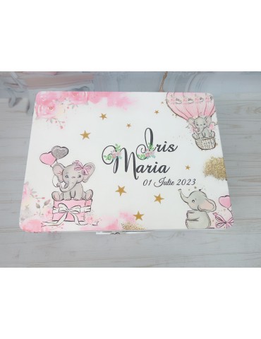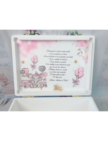 Descoperă o cutie de amintiri unică, realizată cu grijă în atelierul nostru, perfectă pentru a păstra cele mai prețioase momente din viața copilului tău! Această cutie este confecționată din lemn de calitate, vopsită și lăcuită manual, fiecare detaliu fiind realizat cu atenție și pasiune. Grafica delicată,  este adaptată special și transferată prin tehnica decoupage, asigurând un design fermecător și durabil.