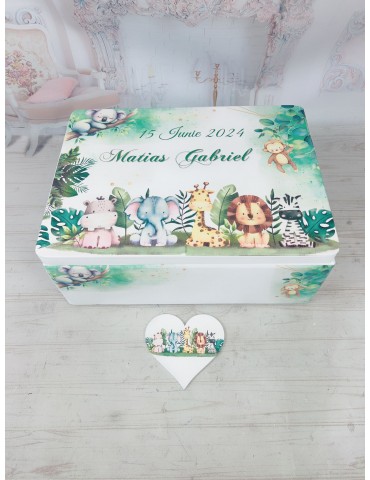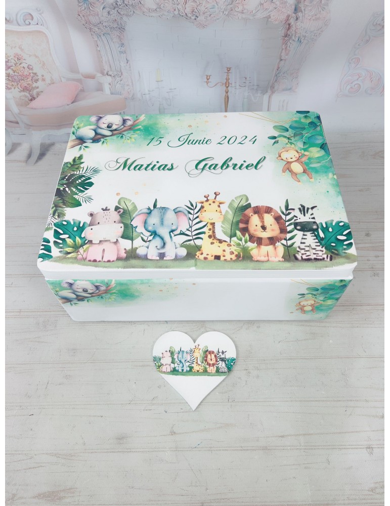 Descoperă o cutie de amintiri unică, realizată cu grijă în atelierul nostru, perfectă pentru a păstra cele mai prețioase momente din viața copilului tău! Această cutie este confecționată din lemn de calitate, vopsită și lăcuită manual, fiecare detaliu fiind realizat cu atenție și pasiune. Grafica delicată, este adaptată special și transferată prin tehnica decoupage, asigurând un design fermecător și durabil.