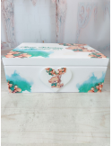 Descoperă o cutie de amintiri unică, realizată cu grijă în atelierul nostru, perfectă pentru a păstra cele mai prețioase momente din viața copilului tău! Această cutie este confecționată din lemn de calitate, vopsită și lăcuită manual, fiecare detaliu fiind realizat cu atenție și pasiune. Grafica delicată, este adaptată special și transferată prin tehnica decoupage, asigurând un design fermecător și durabil.
