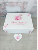 Descoperă o cutie de amintiri unică, realizată cu grijă în atelierul nostru, perfectă pentru a păstra cele mai prețioase momente din viața copilului tău! Această cutie este confecționată din lemn de calitate, vopsită și lăcuită manual, fiecare detaliu fiind realizat cu atenție și pasiune. Grafica delicată, este adaptată special și transferată prin tehnica decoupage, asigurând un design fermecător și durabil.