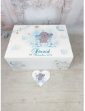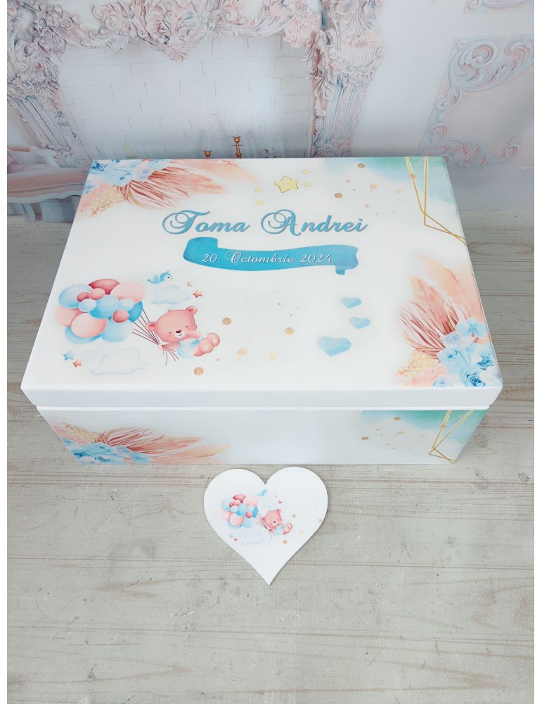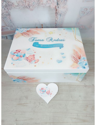 Cutie amintiri din lemn personalizata cu ursulet albastru