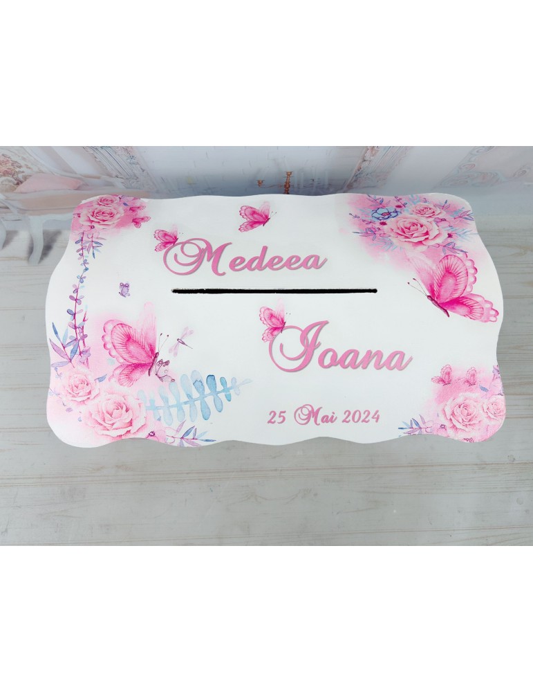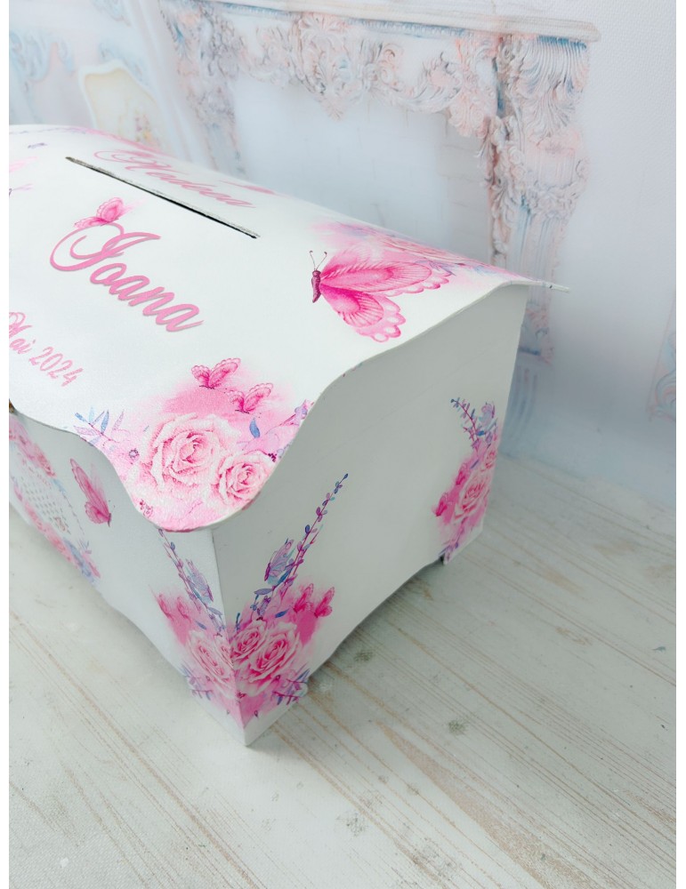 Cutia de dar pentru botez este perfectă pentru ca invitații să lase darurile destinate micuțului botezat într-un mod elegant și organizat.