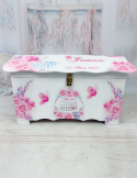 Transformă evenimentul special al botezului într-o experiență memorabilă cu această cutie de dar pentru botez, elegantă și personalizată. Cutia de dar pentru botez este realizată din lemn de înaltă calitate, fiecare produs fiind vopsit, lăcuit și finisat manual în atelierul nostru. Grafica delicată este adaptată special și transferată prin tehnica decoupage, oferindu-i un design unic și rafinat. Pentru o durabilitate de lungă durată, cutia este sigilată cu 3 straturi de lac, asigurând rezistența în timp.
