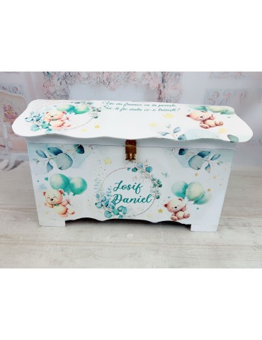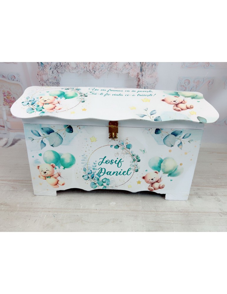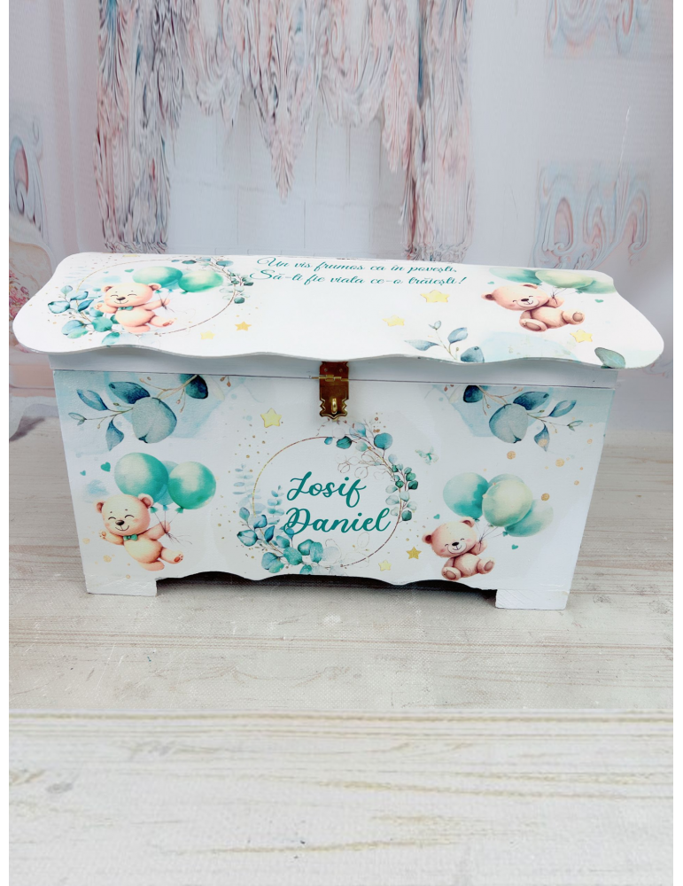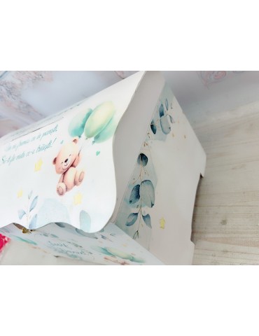 Această cutie de dar poate fi personalizată integral pentru a reflecta tema botezului copilului tău. Poți adăuga numele micuțului, data evenimentului sau un mesaj special, transformând-o într-un obiect cu adevărat unic. În plus, se poate asorta cu alte elemente ale evenimentului, precum trusoul sau accesoriile personalizate.