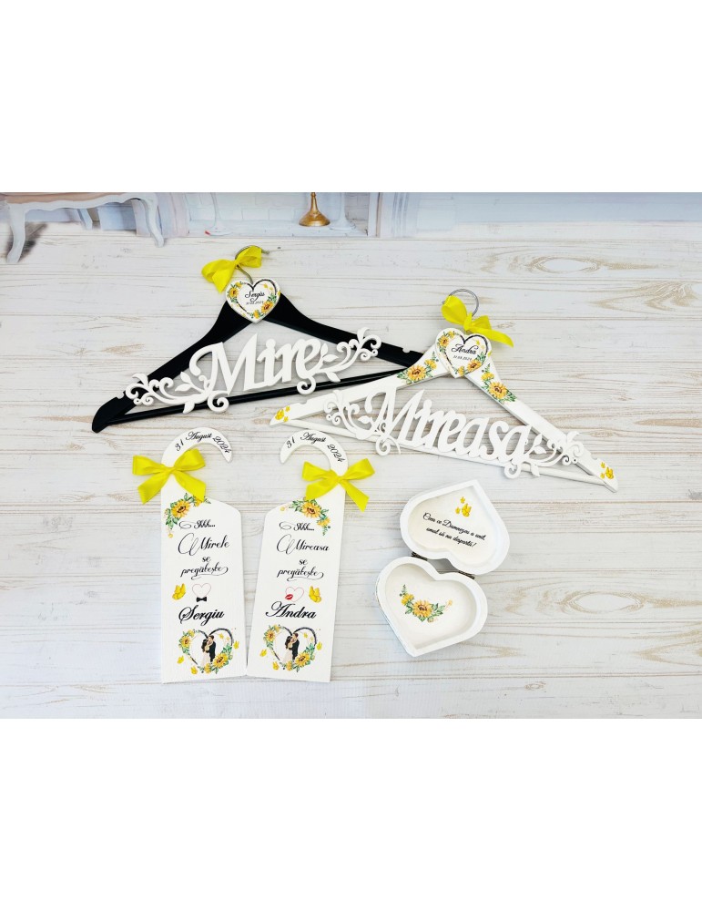 Pretul afisat se refera la o singura cutiuta de verighete si include personalizarea (inlocuire nume miri, data eveniment, mesaj preferat).