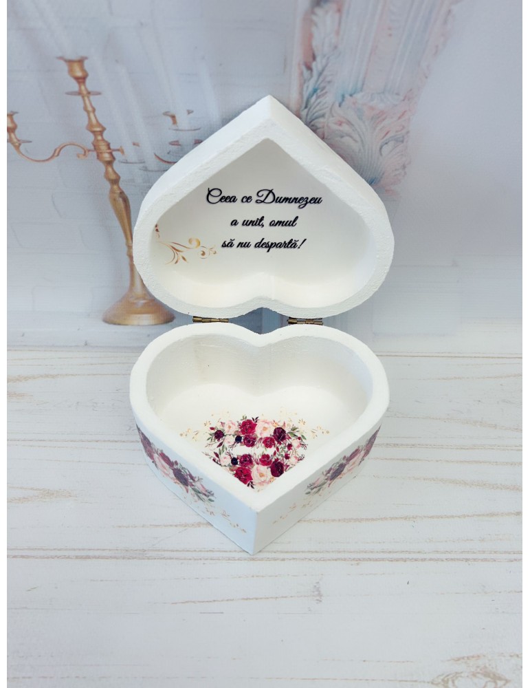 Cutiuta pentru verighete nu numai că serveste un scop practic, dar devine si o piesa de colectie pentru mireasa si mire.