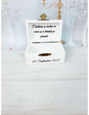 Cutiuta pentru verighete nu numai că serveste un scop practic, dar devine si o piesa de colectie pentru mireasa si mire.
