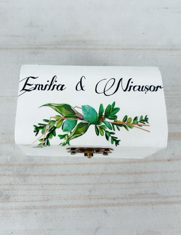 Cutie verighete din lemn nuante de verde