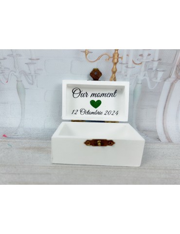 Pretul se refera la o singura cutie de verighete si include personalizarea cu numele mirilor, data evenimentului si mesajul preferat