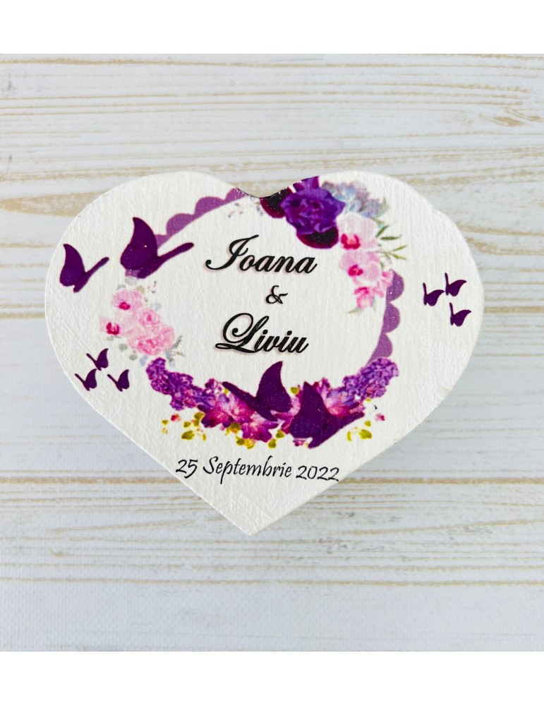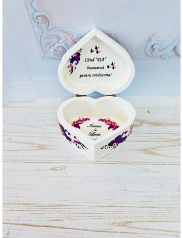 Cutie verighete din lemn cu nuante de mov inchis