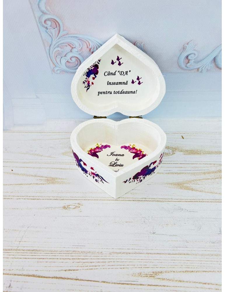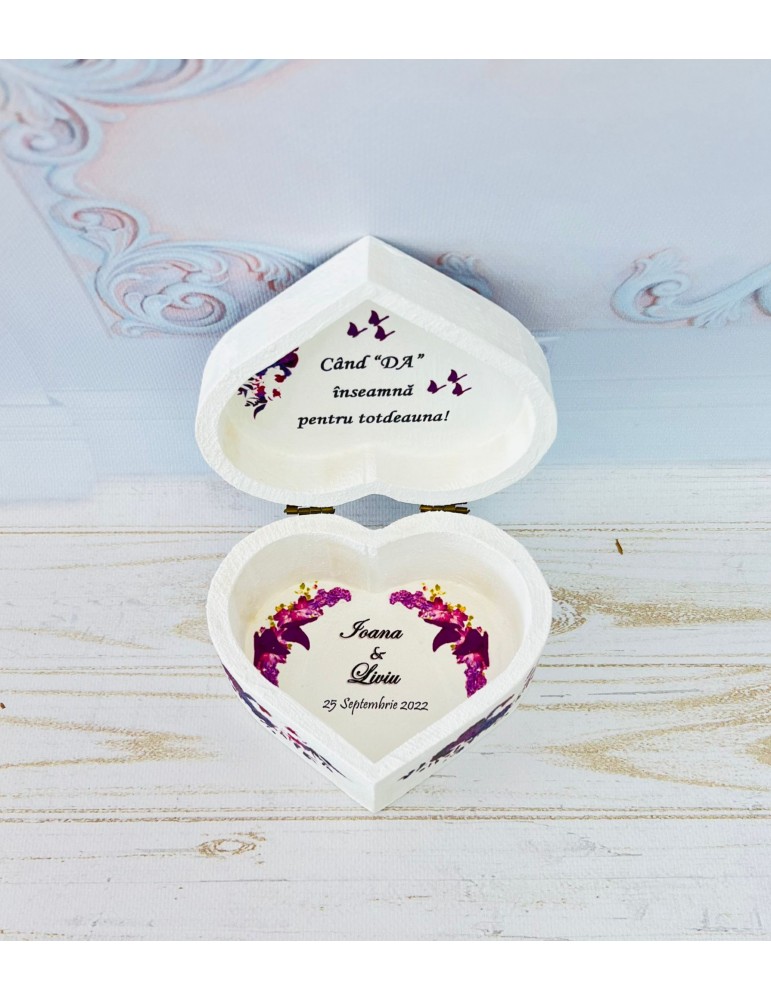Cutiuta pentru verighete nu numai că serveste un scop practic, dar devine si o piesa de colectie pentru mireasa si mire.