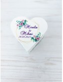 Pretul afisat se refera la o singura cutiuta de verighete si include personalizarea (inlocuire nume miri, data eveniment, mesaj preferat).