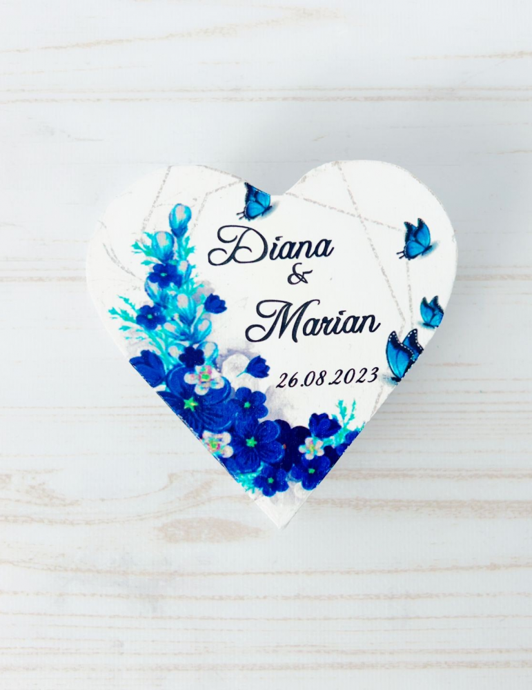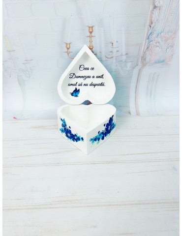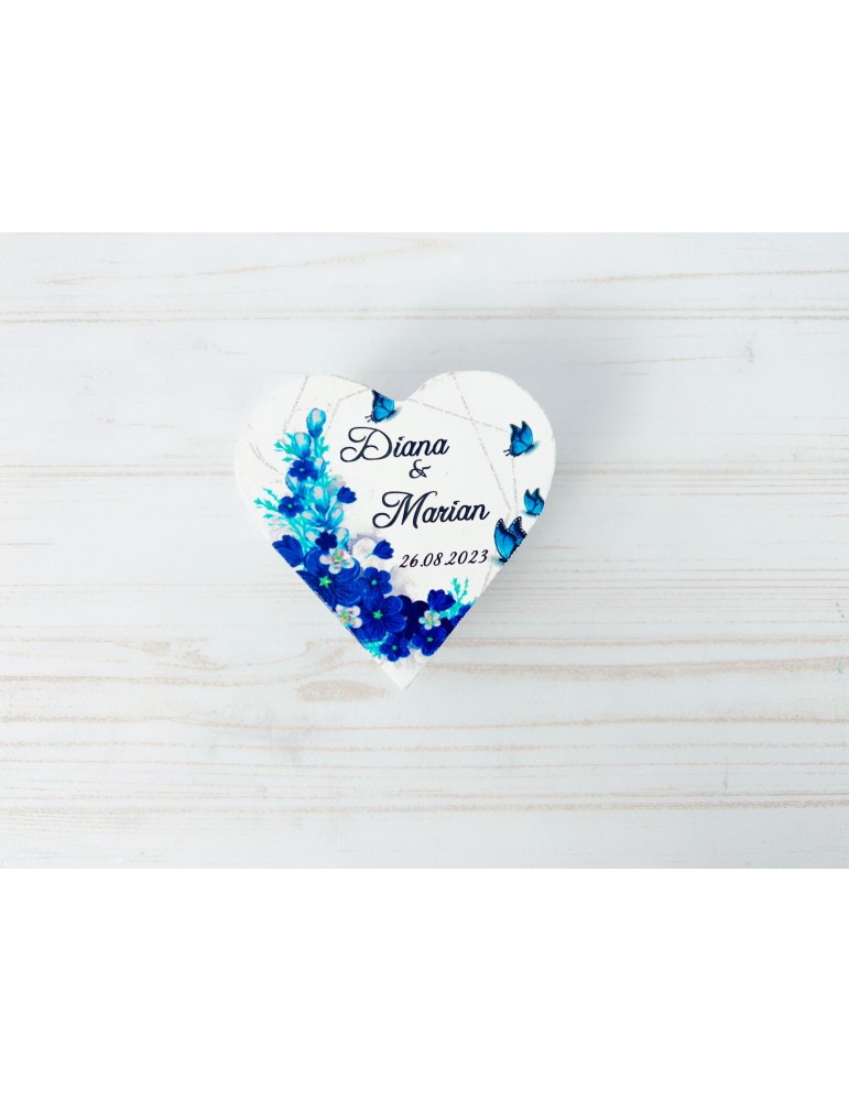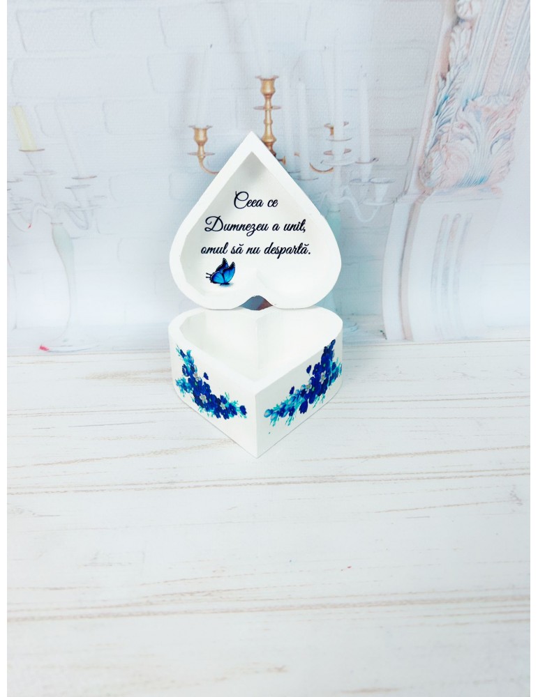 Cutie verighete din lemn cu flori albastre