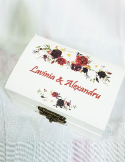 Pretul se refera la o singura cutie de verighete si include personalizarea cu numele mirilor, data evenimentului si mesajul preferat