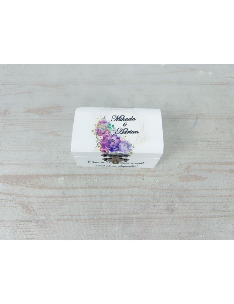 Cutie verighete din lemn cu mov