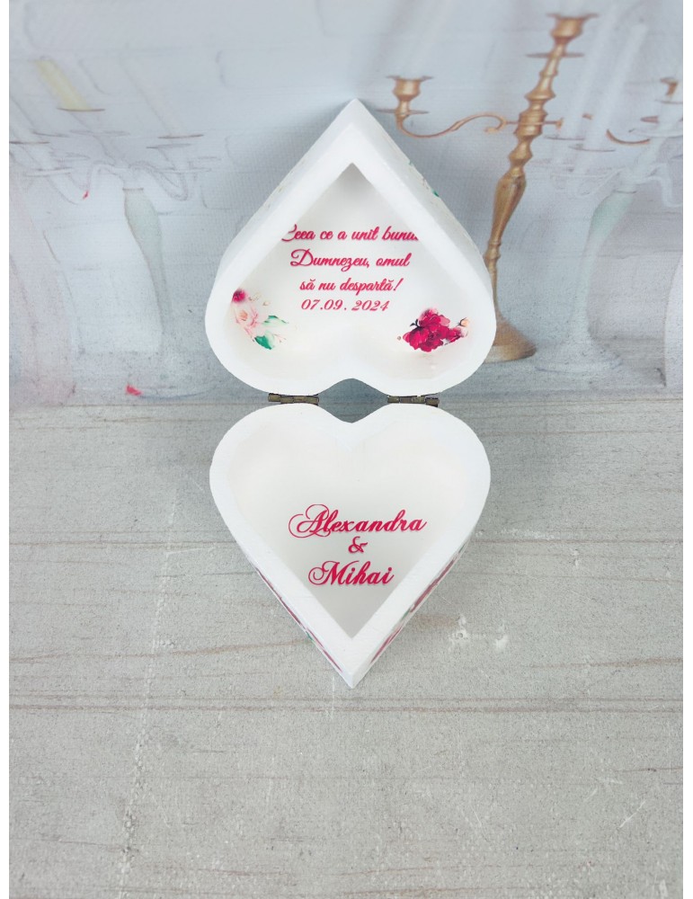 Cutiuta pentru verighete nu numai că serveste un scop practic, dar devine si o piesa de colectie pentru mireasa si mire.