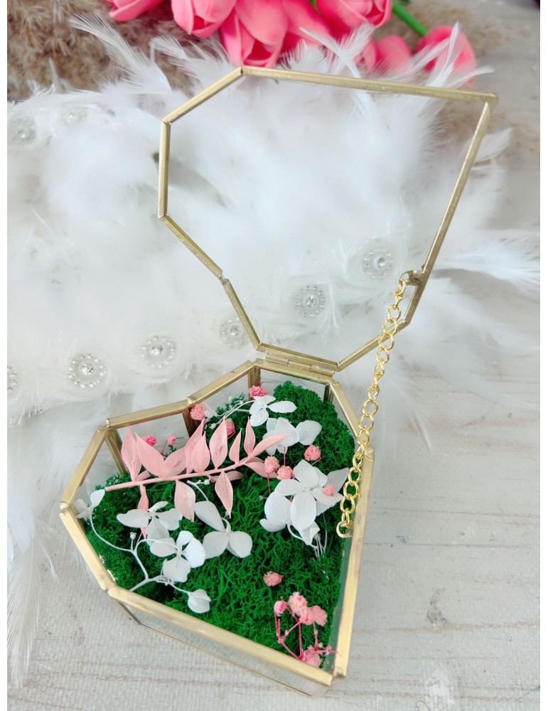 Alegerea accesoriilor pentru nunta include si selectia unui suport verighete care sa completeze tema și decoratiunile evenimentului. O cutie verighete personalizata din sticla cu flori naturale,reprezintă locul perfect pentru pastrarea verighetelor înainte de momentul lor special.