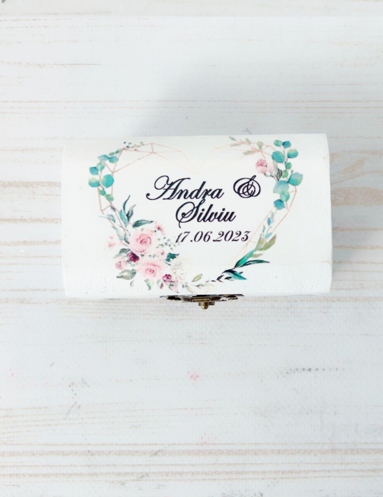 Pentru mireasa care își dorește să își păstreze simbolurile iubirii într-un mod elegant, o cutie verighete personalizata este esențială. Cutie verighete eleganta sau cutie verighete sticla sunt opțiuni rafinate care adaugă o notă de distincție la orice nunta. Cutiuta verighete oferă nu doar protecție pentru inele, dar și o amintire vizuală impresionantă pentru cuplu.