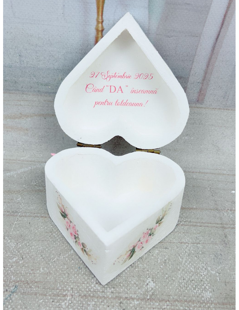 Cutiuta pentru verighete nu numai că serveste un scop practic, dar devine si o piesa de colectie pentru mireasa si mire.