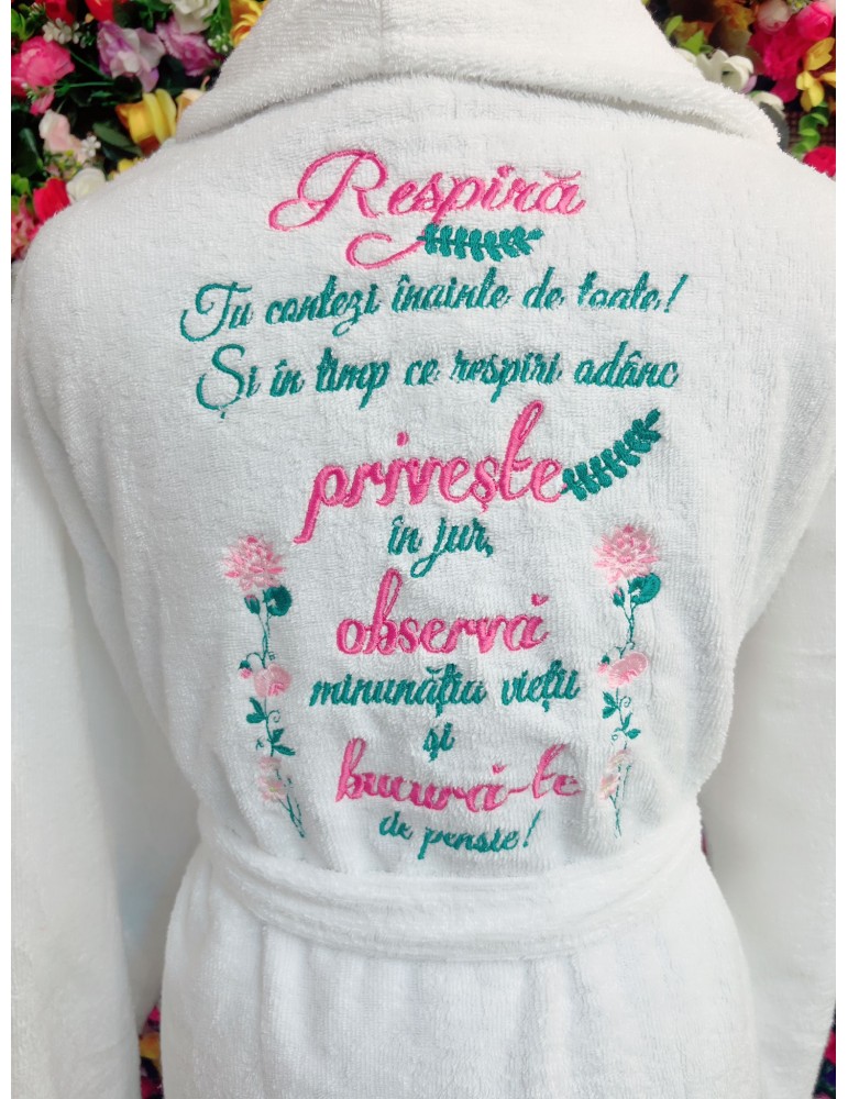 Celebrează un moment special cu un cadou de neuitat: un halat personalizat, perfect pentru o doamnă care a ieșit la pensie. Acest halat elegant și confortabil este alegerea ideală pentru a-i oferi relaxare și răsfăț, simbolizând începutul unei noi etape pline de liniște și bucurie. Personalizat cu un mesaj de apreciere, devine un dar cu adevărat unic, potrivit atât pentru pensionare, cât și pentru 1-8 Martie.
