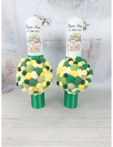 Personalizarea acestei lumânări de botez este flexibilă și complet adaptabilă cerințelor tale. Poți adăuga numele copilului, data evenimentului și orice tematică dorită, pentru a reflecta perfect stilul și unicitatea botezului. Ghemele sunt alese cu grijă și asortate armonios cu tematica graficii, iar panglicile sunt selectate pentru a completa designul cu eleganță.
