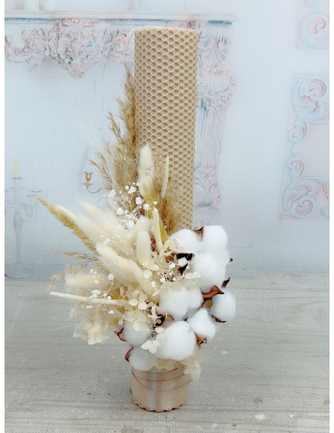 Lumanare din ceara naturala cu flori de bumbac