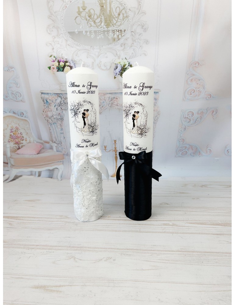 Lumanari nunta personalizate in nuante alb negru
