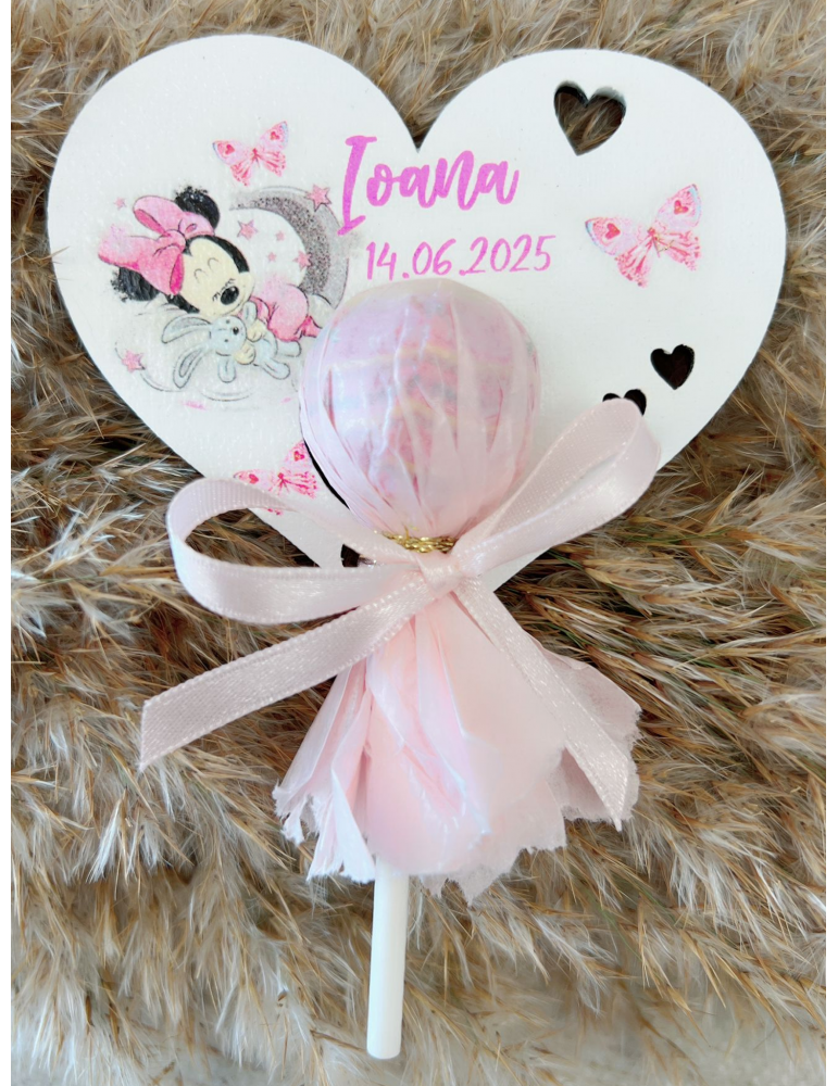 Transformă botezul micutei tale într-un eveniment memorabil cu mărturiile acadea personalizate cu tematica Minnie – mărturii dulci și unice, perfecte pentru invitații tăi!
