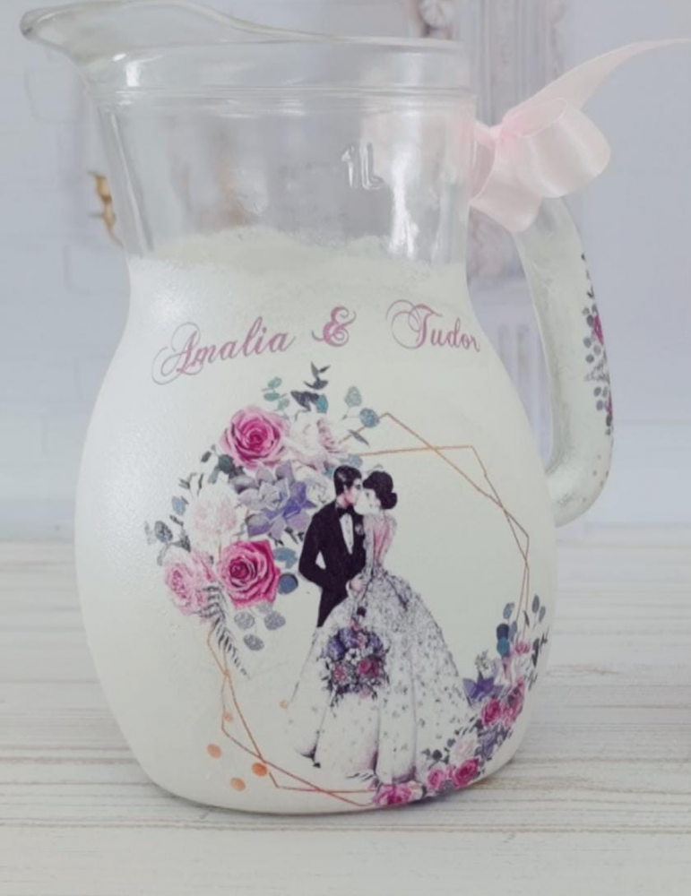 Pretul se refera la o singura carafa si include personalizarea cu numele mirilor si data evenimentului. - Volum carafa miresei