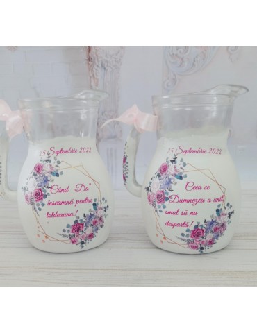 Carafa miresei personalizata cu nuante de roz