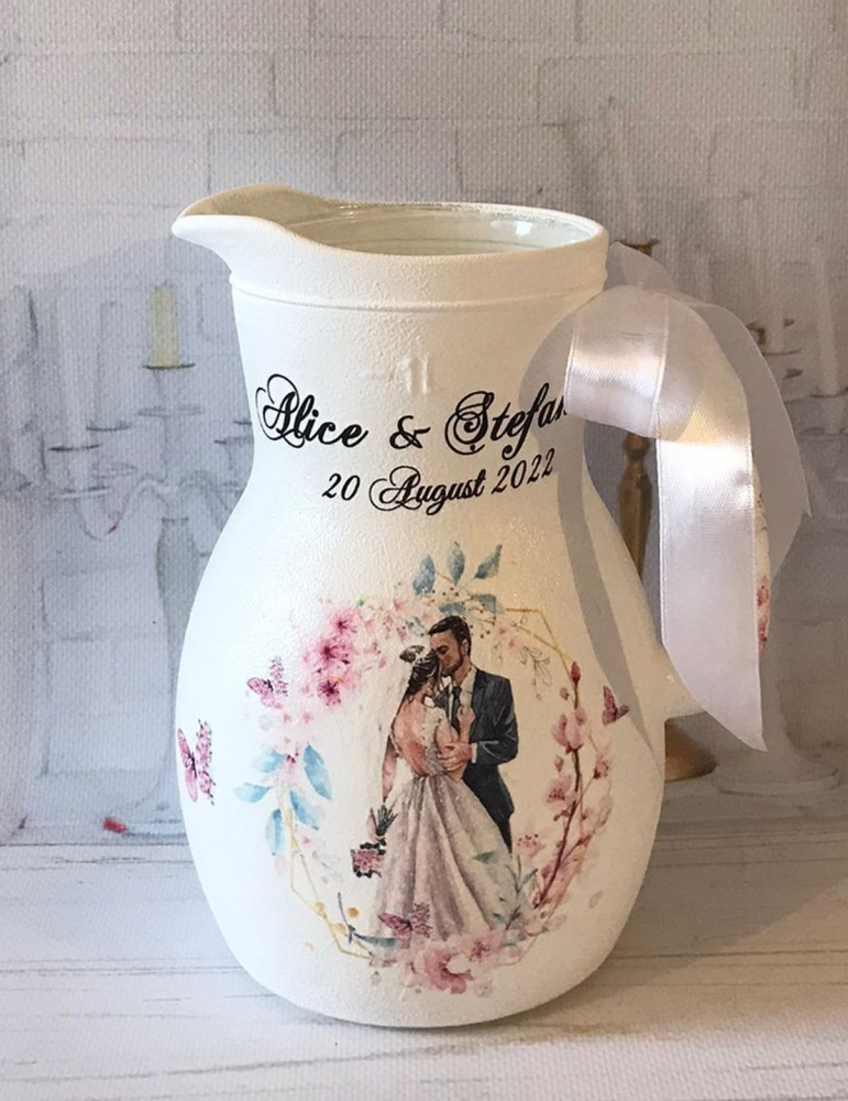 Pretul se refera la o singura carafa si include personalizarea cu numele mirilor si data evenimentului. - Volum carafa miresei