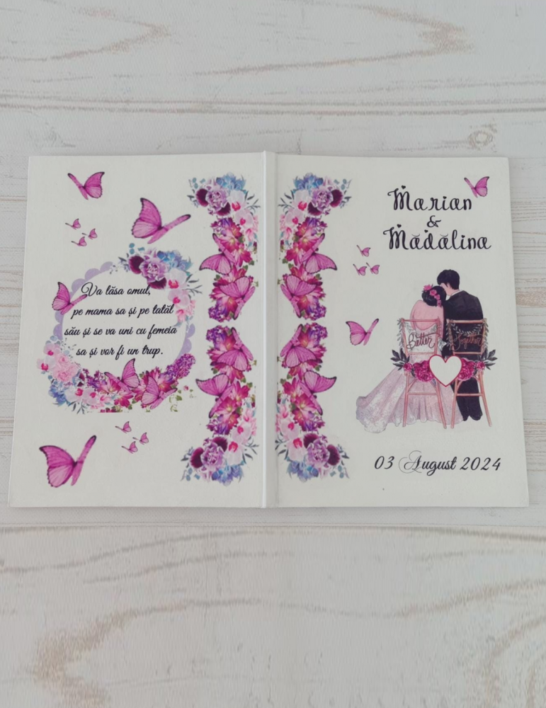 Pretul se refera la o singura agenda si include personalizarea cu numele mirilor si data evenimentului.