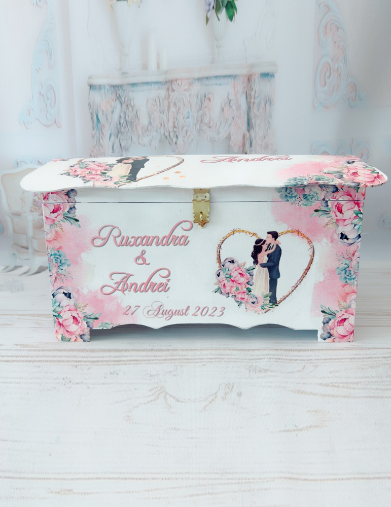 Pentru orice nunta, organizarea și estetica merg mână în mână, iar alegerea unei cutii pentru darul de nuntă reflectă această armonie. Ideală pentru mireasă, această cutie nu doar că asigură un loc sigur pentru bani de nuntă sau plicuri, ci și adaugă un element decorativ mesei de primire. Fie că optați pentru o casuță pentru bani de nuntă sau o cutie pentru dar, aceasta va deveni un punct focal elegant și practic.