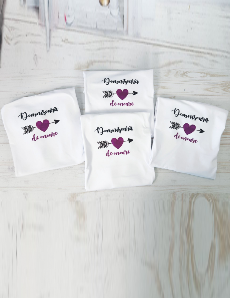 La această nuntă, chiar și tricourile vorbesc despre iubire. De la tricouri personalizate miri cu mesaje precum "Mire în probă" și tricou personalizat mireasa care răspunde cu "Am zis da, acum e prea târziu să fugi!", până la tricouri bridemaids care jură veșnică prietenie, fiecare piesă de îmbrăcăminte adaugă un strop de veselie. Nimic nu spune "Cel mai bun echipaj" mai bine decât tricouri personalizate pentru mire si mireasa, însoțite de echipa lor de super-eroi: nașii și domnișoarele de onoare.